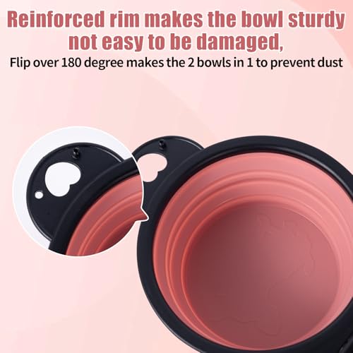 REINFORCED RIMS DOG BOWLS:unlike other collapsible bowls are assembled together,Our dog bowl and trim are Integrated Molded together,connect firmly and not easy to fall apart or broke down.Offer exceptional durability and stability when feeding your pets outdoors.