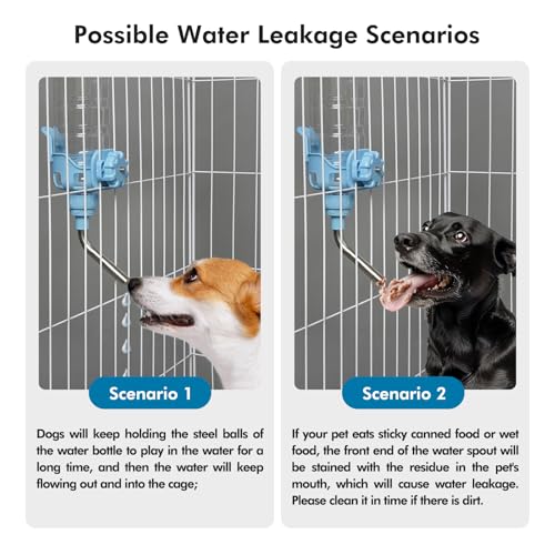 Vannon Dog Water Dispenser for Cage, 34oz Auto Feeding Crate Water Bottle for Dogs, Cats & Rabbits, Pet Nozzle Diameter: 12mm, BPA Free, Blue