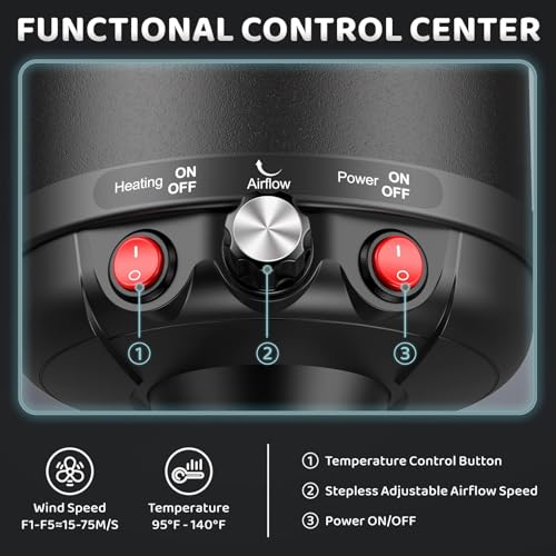 Adjustable Speed & Temperature: Strong and stable motor equips this dog blow dryer with several speed and temperature levels. Maximum Wind Speed: 72m/s; Temperature Range: 95℉-135℉. The dryer will stop working immediately if the temperature is too high because it has a built-in temperature control protection system.