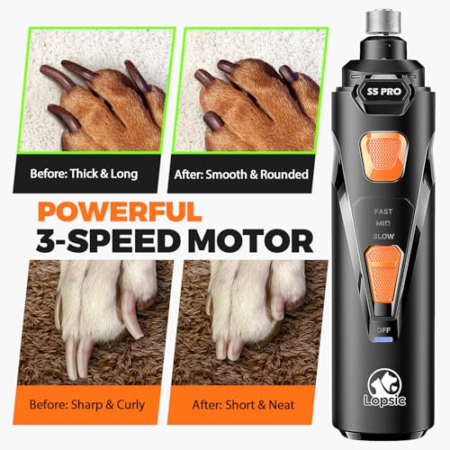 Whisper Quiet Dog Nail Grinder with LED Light, Safe & Stress-Free for Sensitive Dogs of All Breeds & Sizes, 3 Grinding Bits, 3-Speed, Pet Nail Trimmers, Rechargeable Painless Grooming Kit