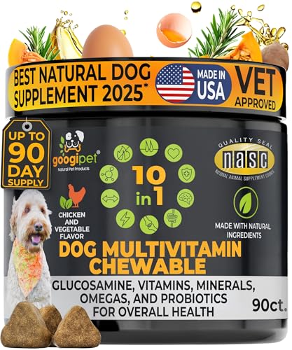 Googipet Premium Dog Multivitamin Chewable, Dog Vitamins and Supplements, Puppy Vitamins & Senior Dogs Probiotics for Gut Health + Vitamin C, Glucosamine for Dogs Joint Support (Chicken Flavor)
