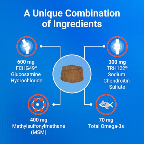 Only COSEQUIN is COSEQUIN. COSEQUIN Joint Health Supplement Plus MSM & Omega-3s contain FCHG49 Glucosamine Hydrochloride, TRH122 Sodium Chondroitin Sulfate, MSM (Methylsulfonylmethane). This combination of ingredients helps maintain your dog’s cartilage and connective tissue. Each soft chew also contains omega-3 fatty acids to help support skin & coat health. COSEQUIN supplements have been used since 1992 in animals to maintain joint health. COSEQUIN supplements have been shown safe, effective, and absorbable in peer-reviewed, published, controlled, U.S. veterinary studies. Each batch of COSEQUIN is subjected to stringent quality control measures and meets label claim.Tasty easy to give soft chews