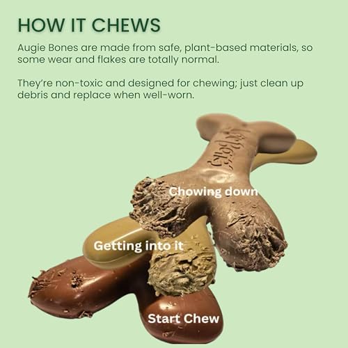 HEALTHY. DELICIOUS. HAPPY: Augie Bones are premium, plant-based tough chew toys for dogs that love a good super chewer. Thoughtfully designed to behave like typical popular tough nylon and plastic dog toys, but are not made with any nylon or traditional plastics, using non-toxic, sustainable, certified safe materials– Augie Bones safe dog toys make playtime fun and planet-friendly for your furry friend!
