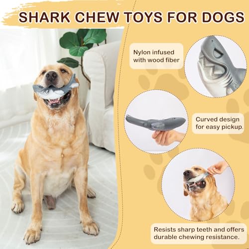 Dog Toys for Aggressive Chewers, Shark Dog Toy with Curved Design for Easy Pick Up, Nylon Chew Toys to Keep Dogs Busy for Hours for Medium, Large Dogs (25-80 lbs)