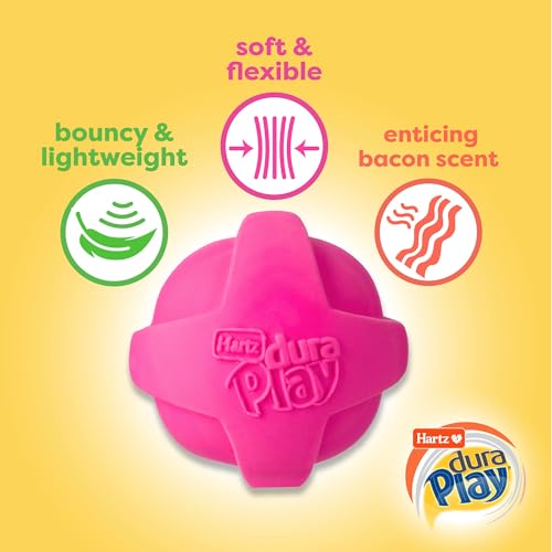Hartz DuraPlay Ball Squeaky Latex Dog Toy, Neon Green, Neon Pink & Neon Orange, Large 3 Count Pack