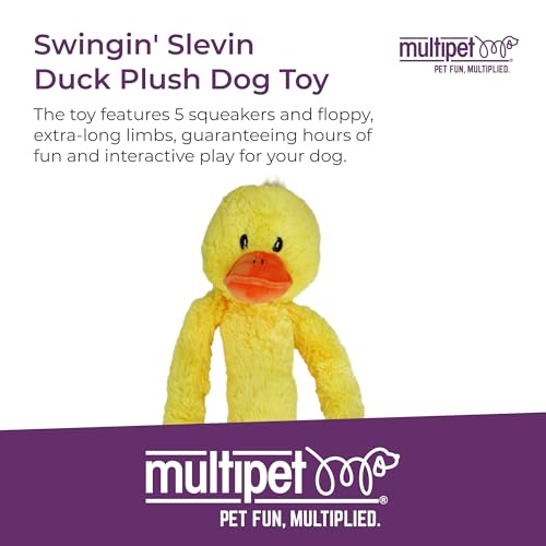 Multipet Swingin’ Slevin Duck Dog Plush Toy – Squeaky Dog Toy for All Dogs – Extra Soft Plush – Stuffed Animal for Cuddling & Playing – Cute Dog Pet Toy (27”, Yellow, 5 Squeakers)