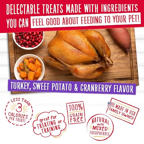 Charlee Bear Crunch Grain Free Dog Treats, Turkey, Sweet Potato and Apple, 8 Ounce Resealable Bag, Low Calorie Training Treats for Dogs, Limited Ingredient, Healthy, Crunchy Dog Snacks, Made in USA