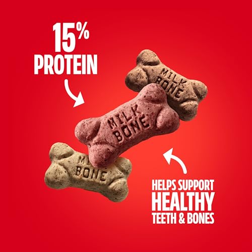 Make your dog′s life more fun by turning up the flavor. Milk-Bone Flavor Snacks Mini’s dog snacks offer an assortment of three delicious flavors your dog will love: beef, chicken and bacon with other natural flavors. At five calories per treat, they make perfect everyday dog treats — or use them as training treats for your pup. Each mini dog biscuit contains 15% protein and 12 vitamins and minerals, including iron, zinc and vitamin B12. Plus, calcium and phosphorus help support healthy teeth and bones. A crunchy texture helps freshen breath and reduce tartar build-up, which means you can fully enjoy all those sloppy kisses your dog will thank you with. And these crunchy dog treats are baked with love in Buffalo, New York, USA, for wholesome goodness you can feel good about.