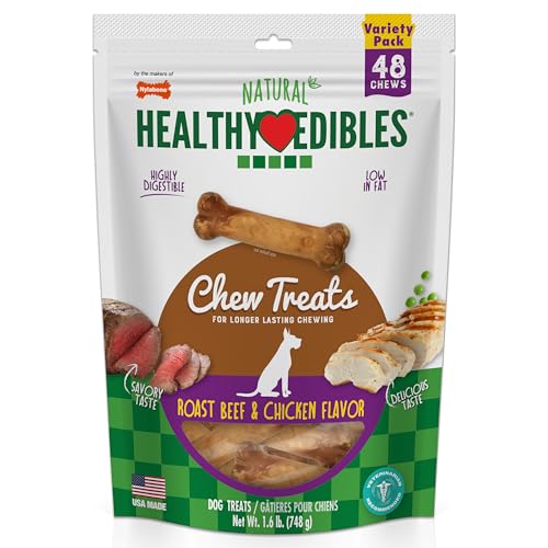 Nylabone Healthy Edibles Natural Dog Chews, Long Lasting Bones for Dogs, Roast Beef & Chicken Flavor Dog Treats, X-Small (34 Count)