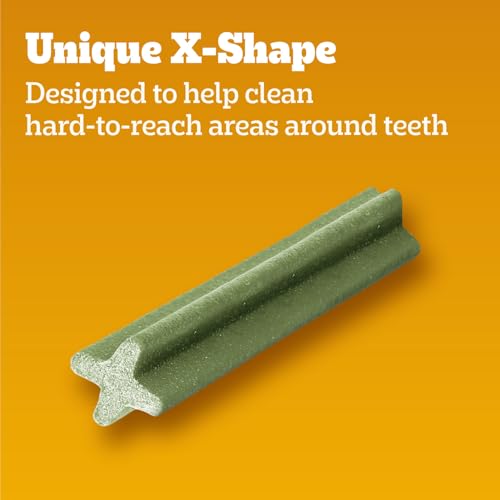 X-Shape Design: Pedigree Dentastix small dog dental chews have a unique X-shape and chewy texture that helps scrape away plaque while chewing to help clean hard-to-reach areas around teeth