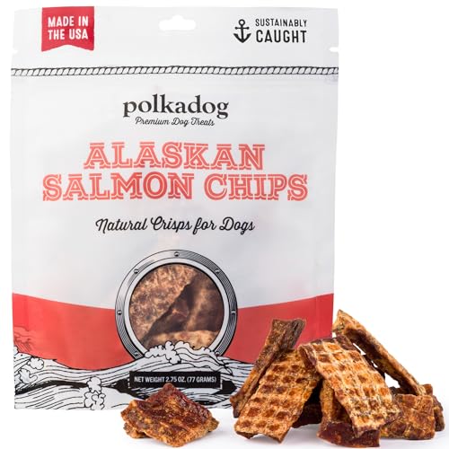 Polkadog Crunchy Alaskan Salmon Chips – Single Ingredient Dog Treats with Wild-Caught Salmon – All Natural, Grain-Free, Lean Protein & Omega-3 Rich Snacks for Dogs – Handcrafted in USA – 2.75 oz