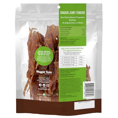 SIMPLE LIMITED INGREDIENTS: Your dog will be wagging their tail with joy when they taste Waggin’ Train chicken jerky dog treats! All of our dog jerky items are made with only real, simple ingredients and are perfect pet treats for any size adult dog