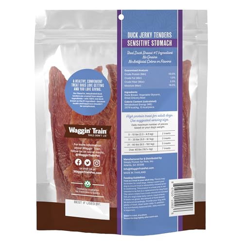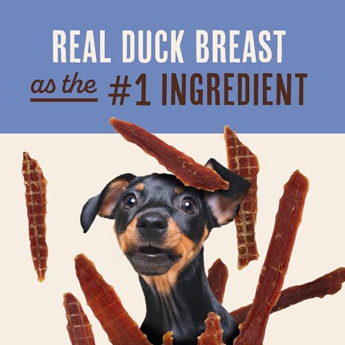 Waggin’ Train Duck Jerky Dog Treats for Dogs with Sensitive Stomachs, Made with 100% Real Duck Breasts, Three All-Natural Ingredients, High Protein Dog Treat, Easily Digestible for Dogs, 12 oz. Pouch