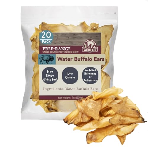 Wild Eats Water Buffalo All Natural Ear Dog Chews, Single Ingredient Dog Treats – 20 Count (Grain Free Treats – Great Alternative to Pig Ears, Cow Ears, Bones & Rawhides)